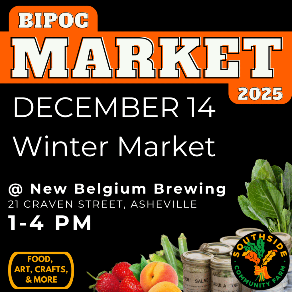 Join us at New Belgium for a variety of local BIPOC vendors including farmers, artists, bakers, herbalists, and more! Southside Community Farm will be selling merchandise and our own fresh produce. Are you a maker of color who is interested in vending? Email Andi Gonzales at ashevillemarket@newbelgium.com