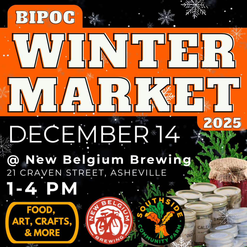 Join us at New Belgium for a variety of local BIPOC vendors including farmers, artists, bakers, herbalists, and more! Southside Community Farm will be selling merchandise, herbal salves, and our own fresh produce. Are you a maker of color who is interested in vending? Email Andi Gonzales at ashevillemarket@newbelgium.com